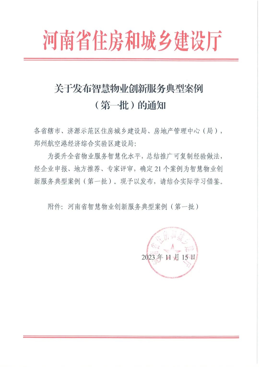 建業(yè)物業(yè)入選河南省首批智慧物業(yè)創(chuàng)新服務(wù)典型案例名單