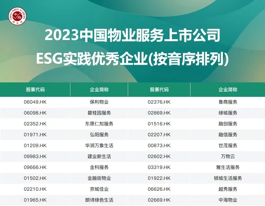 會上發(fā)布了“2023中國物業(yè)服務(wù)上市公司ESG測評研究報告”。中指研究院、中信證券研究部、北京秩鼎公司聯(lián)合對物業(yè)管理行業(yè)ESG體系開展研究與測評,對59家物業(yè)服務(wù)上市公司2022年度ESG報告表現(xiàn)進行了測評研究,將ESG報告評分按照總體得分排序。建業(yè)新生活榮獲“2023中國物業(yè)服務(wù)上市公司ESG實踐優(yōu)秀企業(yè)”。